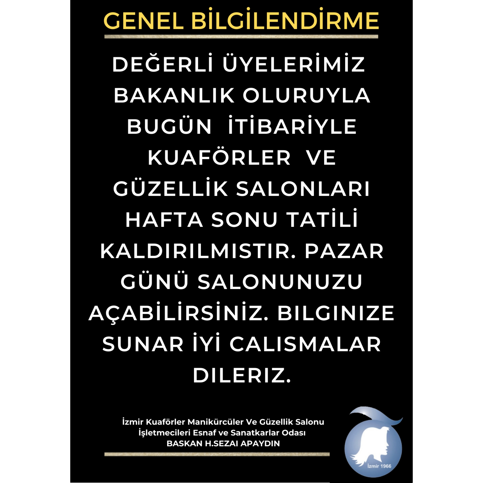 İZMİR KUAFÖRLER MANİKÜRCÜLER VE GÜZELLİK SALONU İŞLETMECİLERİ ESNAF VE SANATKARLAR ODASI