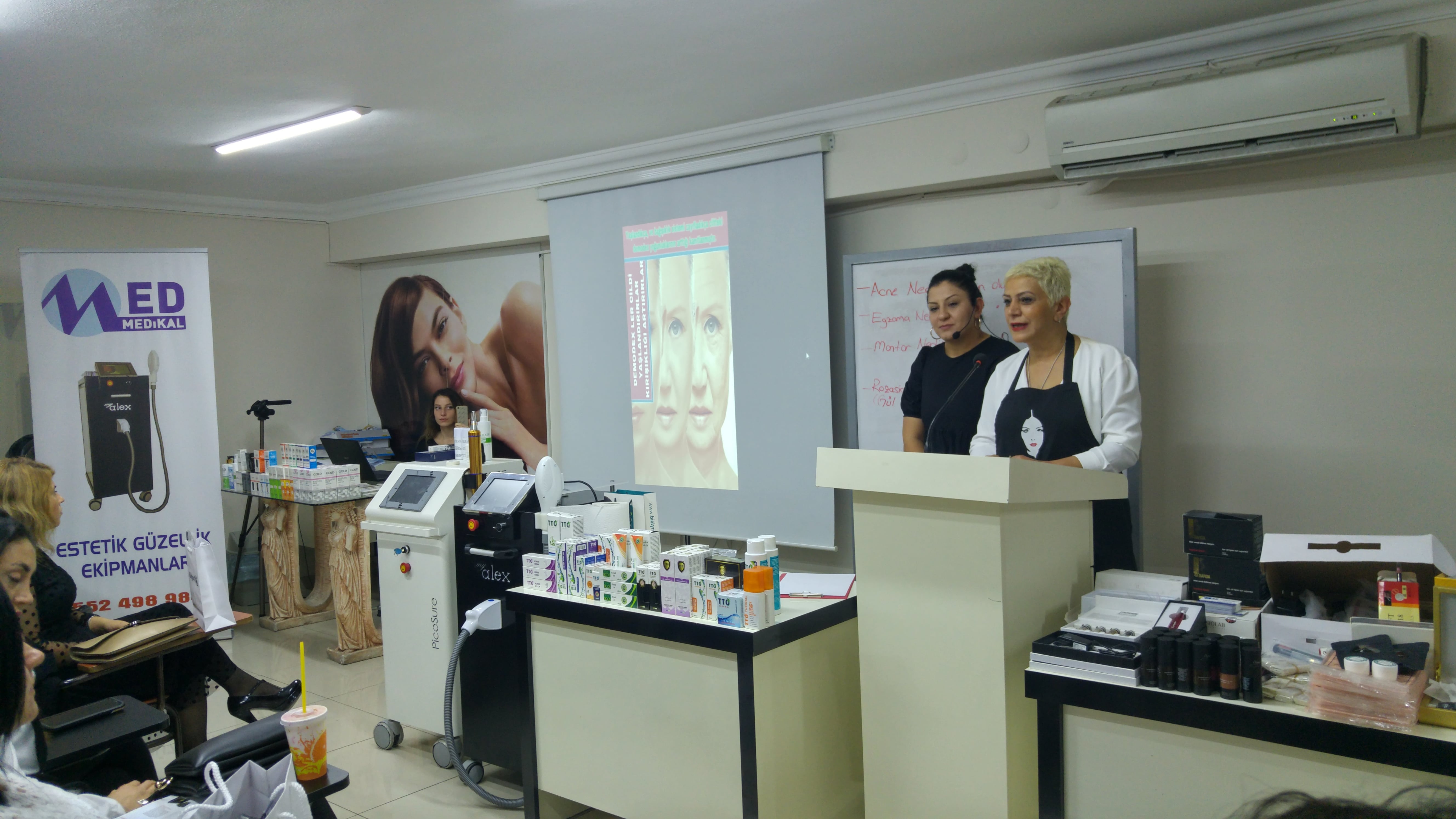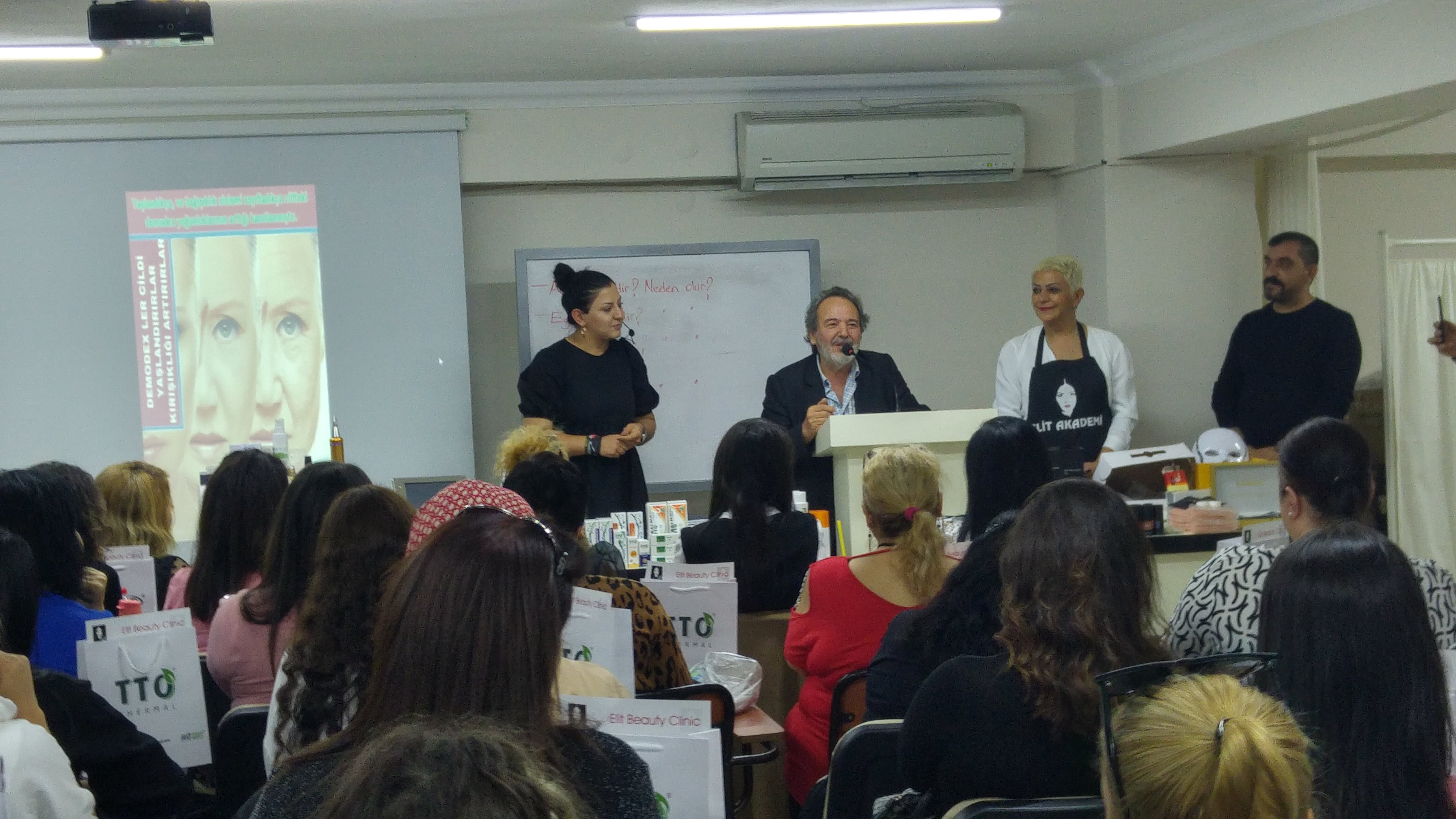 ODAMIZIN EĞİTİM SALONUNDA EĞİTMENLER AYNUR ÖZTÜRK – SERAP KANTAROĞLU –EMRULLAH YAĞMUR VE CEYLAN ARSLAN ( ELİT AKADEMİ TTO, ÇAY AĞACI MUCİZESİ, RENK AÇMA, ANTİ AYCİNG MİX SERUM VE LAZER İLE İLGİLİ KONULARDA ÜCRETSİZ EĞİTİM SEMİNERİ VERDİLER. EĞİTİM SEMİNERİNE KATILANLARA SERTİFİKA VERİLDİ.