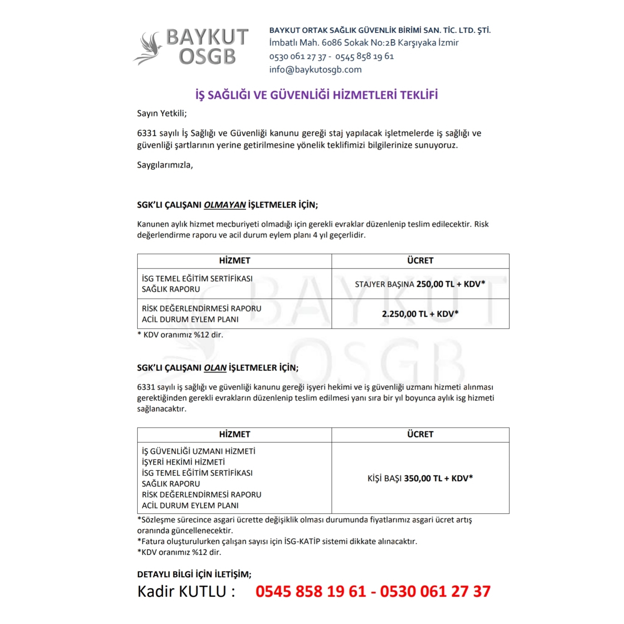 İş sağlığı ve güvenliği hizmetleri teklifi