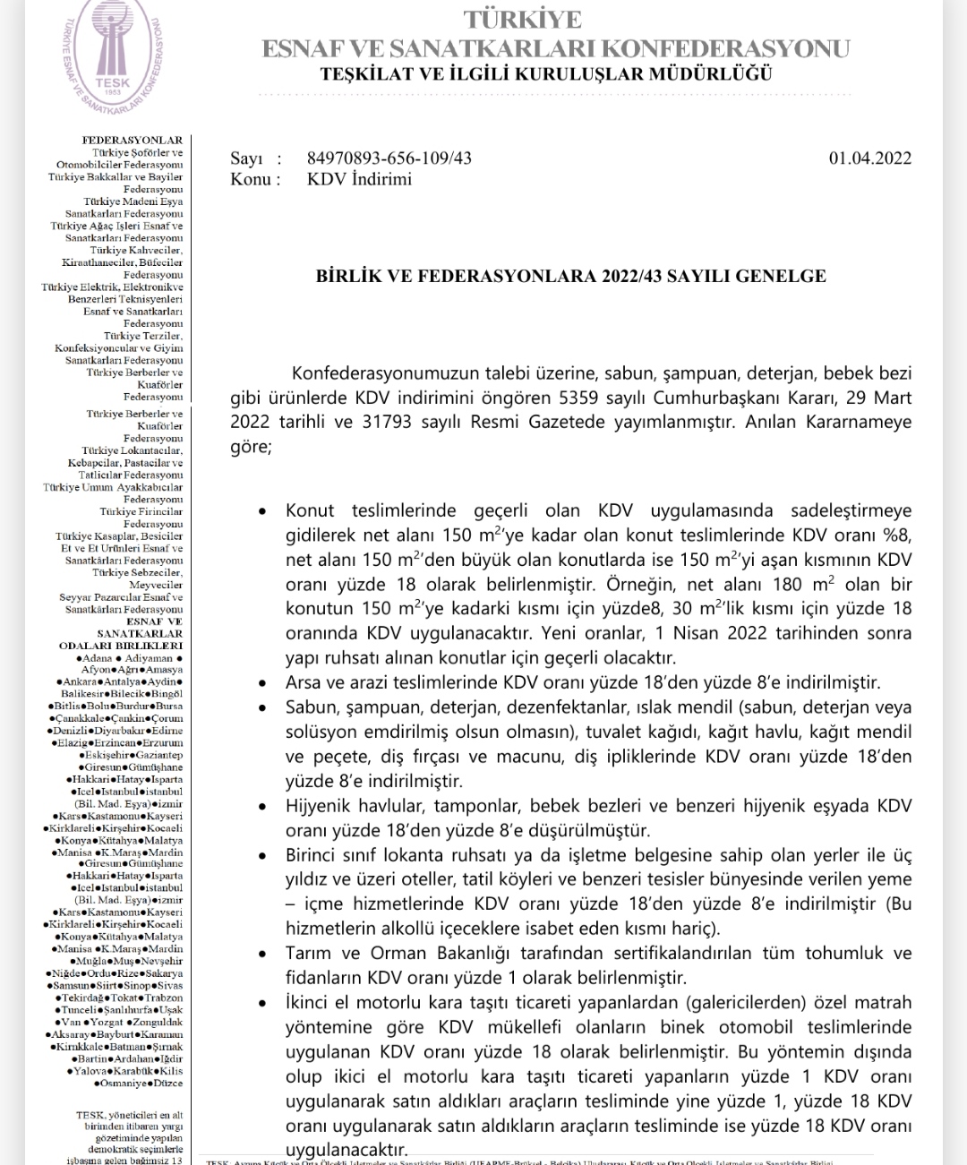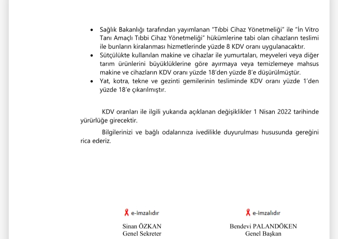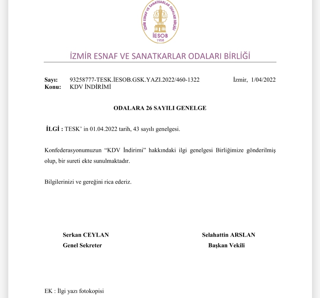 KDV İndirimi Hakkında Genelge