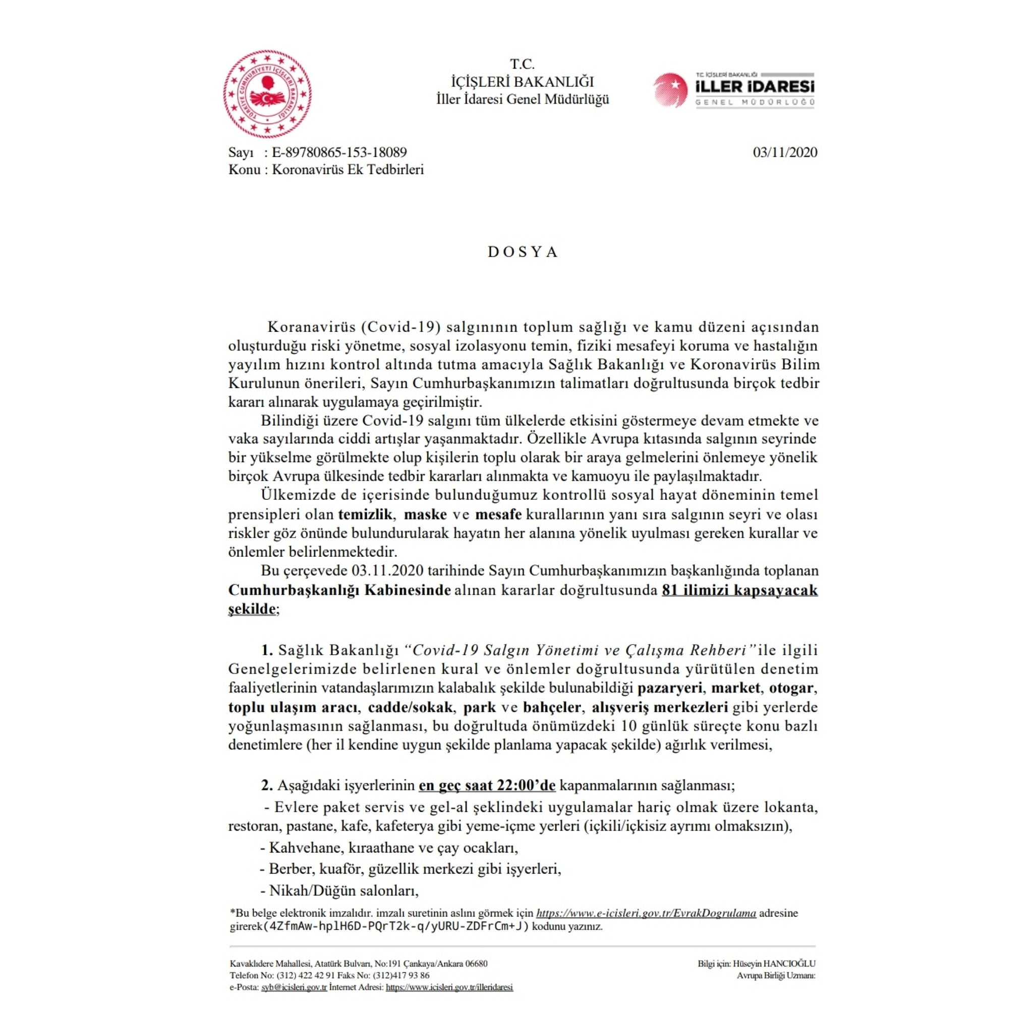 Koronavirüs Ek Tedbirleri