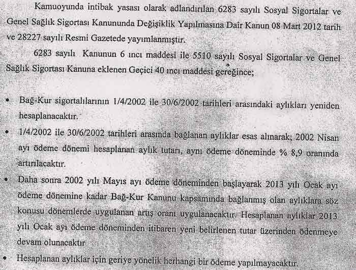İntibak Kanunu İle İlgili Duyuru