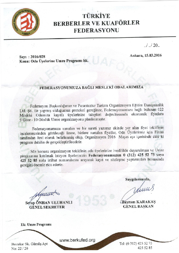 Oda Üyelerine Umre Programı Hakkında